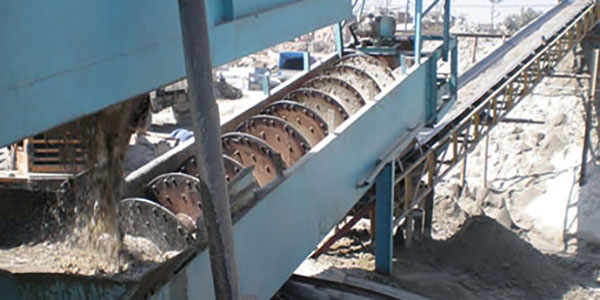 該設(shè)備廣泛用于各種易洗和難洗礦石的洗礦。礦石中含泥在20%以上則對碎礦機及溜槽產(chǎn)生堵塞,該設(shè)備可使含泥在20%以上的礦石,在洗石機中螺旋攪拌、擦洗達(dá)到礦石與泥分離的目的,洗凈后的礦石從排料口排出,泥水從尾礦端排出。該設(shè)備與圓筒洗礦機配合,對處理難洗礦石是目前比較有效的設(shè)備。