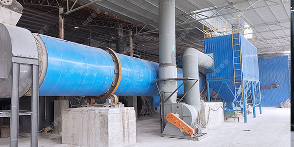 干燥的濕物料由輸送機或者提升機機送到料斗,然后經料斗的加料機通過加料管道進入加料端。物料在內部抄板或者傾斜角度的作用下,緩慢向出料端流動,載熱體由低端進入,與物料成逆流接觸,也有載熱體和物料一起并流進入筒體的。隨著圓筒的轉動物料受重力作用運行到較底的一端。濕物料在筒體內向前移動過程中,直接或間接得到了載熱體的給熱,使濕物料得以干燥,然后在出料端經皮帶機或螺旋輸送機送出。載熱體一般分為熱空氣、煙道氣等。載熱體經干燥器以后,一般需要旋風除塵器將氣體內所帶物料捕集下來。如需進一步減少尾氣含塵量,還應經過袋式除塵器或濕法除塵器后再排空。